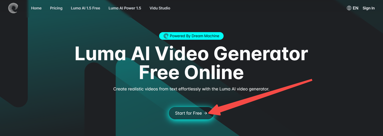 Open your browser and visit https://aivideogenerator.me/. Click the "Start for Free" button to begin.